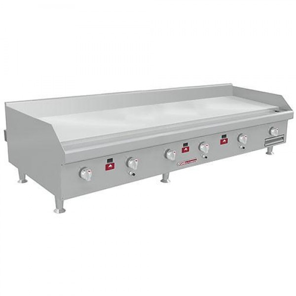 The Southbend HDG-72-M Countertop Griddle is an 72” heavy duty gas griddle that can be used for all your pancakes to burgers with all of its great features. It includes an electronic spark ignition (battery) for easier operation. The beauty of these griddles are in their features that include stainless steel front, vent and sides and have standard, rear and bottom panels that are aluminum steel. The reinforced, insulated double wall sides are very good for even cooking.