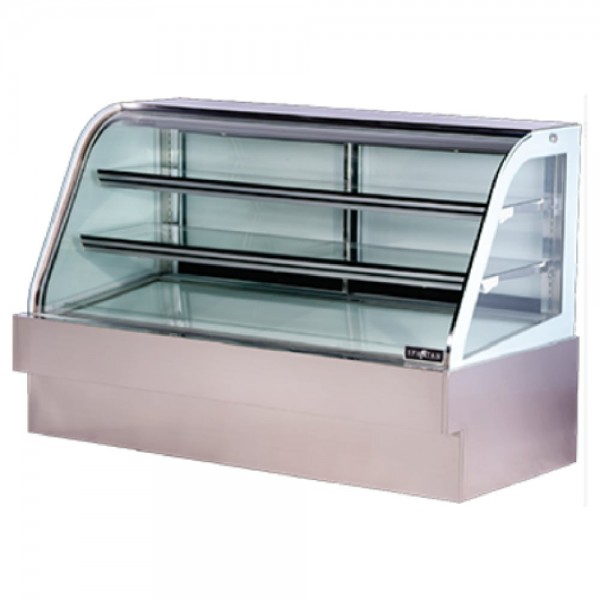 Spartan Refrigeration, SD-72, Curved Glass Deli Case, 70-3/4", bottom mounted self-contained refrigeration, anti-fog glass face, (2) adjustable glass shelves (12" & 16") plus 21" base, interior lighting, digital temperature display, (2) rear doors, 201 stainless steel exterior, R290 Hydrocarbon refrigerant, 3/4 HP, 110v/60/1-ph, 13.5 amps, NEMA 5-15P, cETLus, ETL-Sanitation