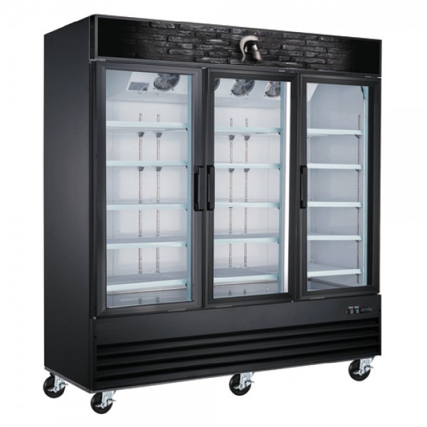 Spartan Refrigeration, SGM-72RS, Reach-In Refrigerator Merchandiser, three-section, 69.0 cu. ft., bottom mounted self-contained refrigeration, self closing anti-fog glass doors, (12) adjustable plastic coated steel shelves, fluorescent interior lighting, mechanical temperature control, painted steel exterior, R290 Hydrocarbon refrigerant, 1/2 HP, 120v/60/1-ph, 13.1 amps, NEMA 5-15P, cETLus, ETL-Sanitation
