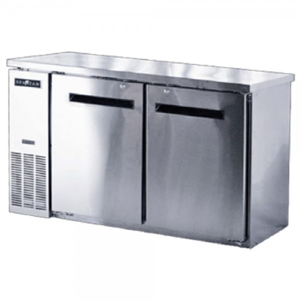 Spartan Refrigeration, SSBB-48, Back Bar, 48.8", two-section, 11.8 cu. ft., side mounted self-contained refrigeration, hinged solid doors, (4) adjustable shelves, digital temperature control, interior lighting, 430 stainless steel exterior, 304 stainless steel interior, R290 Hydrocarbon refrigerant, 1/3+ HP, 115v/60/1, 7.2 amps, NEMA 5-15P, cETLus, ETL-Sanitation