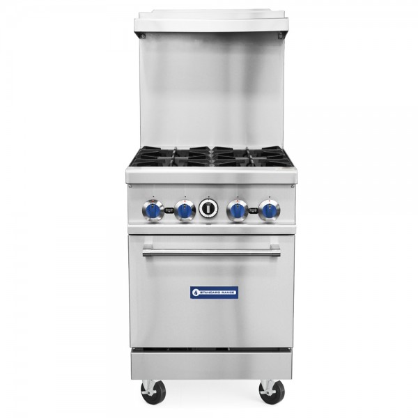 Standard Range 24" Commercial gas range, 4 open burners, 1 oven
