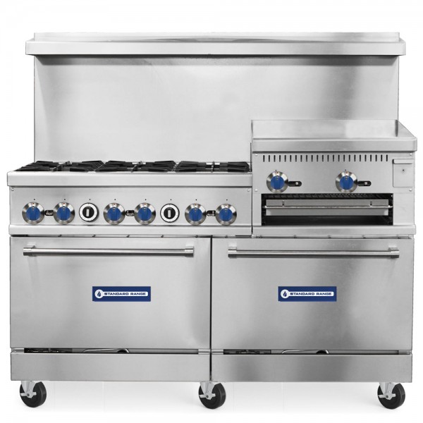 Standard Range SR-R60-24RG-LP 60" Liquid Propane Commercial Range, 6 Burner, 2 Oven, 24" Raised Griddle / Broiler - 306,000 BTU