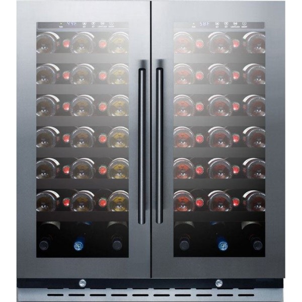 Summit Appliance SWC3066B, 2 Swing Glass Door Wine Cellar Cabinet, Dual Temperature, 12 Shelves