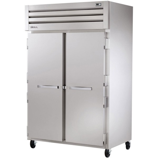 As part of the True Specification Series, TheTrue STR2F-2S-HC offers unrivaled performance and durability. Crafted from the finest stainless steel available on the market this freezer will look like new years down the road. Boasting a 1 1/4 Horsepower refrigeration system that uses a factory engineered capillary tube system and an extra large evaporator coil that is epoxy coated to eliminate the possibility of corrosion. State of the art, electronically commutated evaporator and condenser fan motors operate at higher peak efficiencies and move a more consistent volume of air which produces less heat, reduces energy consumption and provides greater motor reliability for longer unit life. The STR2F-2S-HC comes standard with p ositive seal self-closing door with 120° stay open feature with lifetime guaranteed external cam lift door hinges, four per door section.