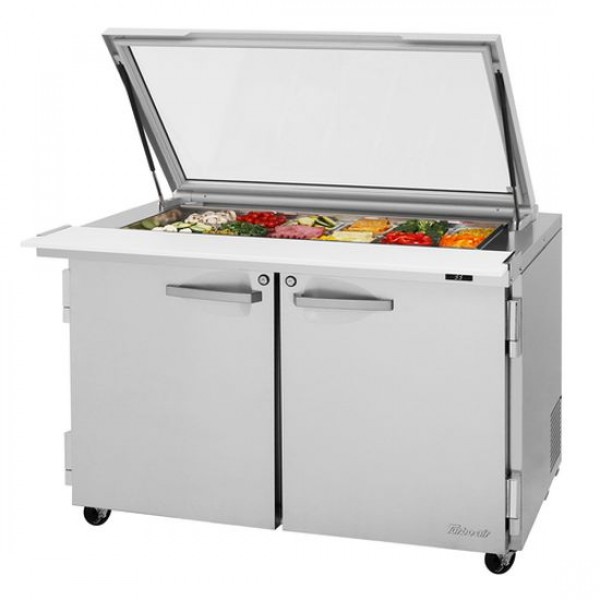 Turbo Air PST-48-18-N-GL Pro Series 48" Glass Lid Two Door Mega Top Prep Table w/ 18-Pan Top - 15 Cu. Ft.