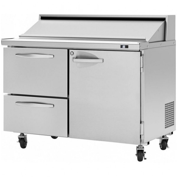 Turbo Air PST-48-D2R-N Pro Series 48" Right-Hinged Door & 2 Left Drawer Sandwich/Salad Prep Table w/ 12-Pan Top - 12 Cu. Ft.