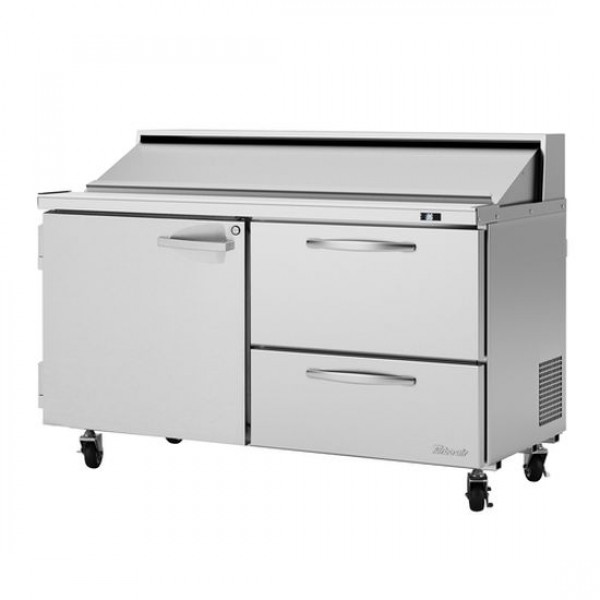 Turbo Air PST-60-D2L-N Pro Series 60" Left-Hinged Door & 2 Right Drawer Sandwich/Salad Prep Table w/ 16-Pan Top - 16 Cu. Ft.