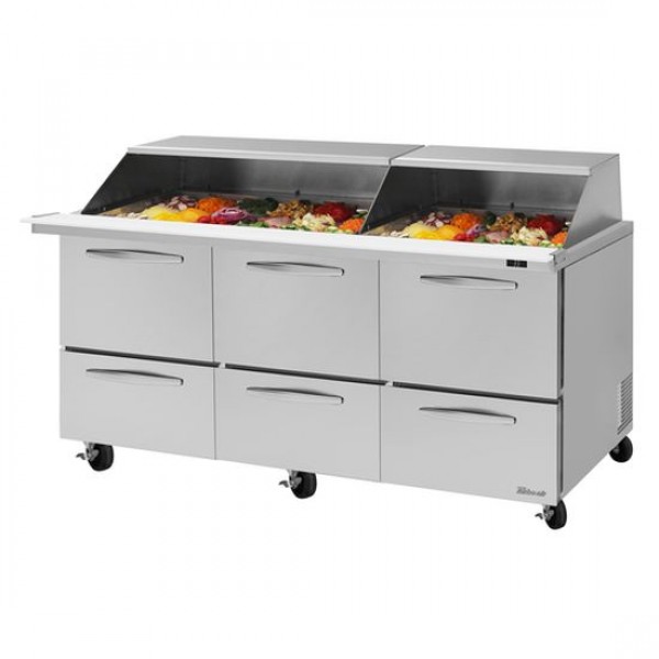 Turbo Air PST-72-30-D6-N-SL Pro Series 72" Slide Lid Six Drawer Mega Top Prep Table w/ 30-Pan Top - 23 Cu. Ft.