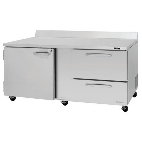 Turbo Air PWR-72-D2L-N Pro Series 72" Left-Hinged Door & 2 Right Drawer Worktop Refrigerator - 19 Cu. Ft.
