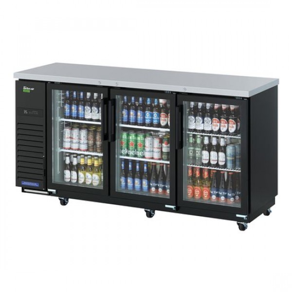 Turbo Air TBB-24-72SGD-N Super Deluxe Series 73" Three-Section Glass Door Narrow Back Bar Cooler