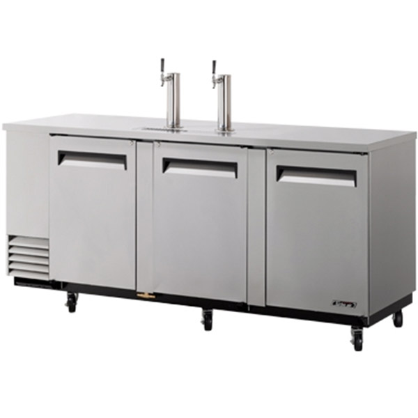 Serve refreshingly ice cold beverages in your establishment with the Turbo Air TBD-4SD-N commercial beer dispenser. This dependable keg cooler is designed to suit the needs of busy bars, pubs, catering events, and other drinkservice operations. It is a 90" wide versatile performer that can hold 4 barrels and accommodate up to Four Way Tapper Main Fold 440 Ibs in crated weight. It features 3 Swing Doors that are designed to minimize user fatigue. A self cleaning condenser operates autonomously and brushes daily to keep the device clean and hygienic while also preventing system failure. The side mounted compressor absorbs heat inside to maintain the correct interior temperature. High-density polyurethane insulates the entire cabinet for added cooling efficiency. Portability casters make it possible to move this commercial beer kegerator from one area to the other within your drinkservice outlet. Maintain a constant temperature of 33°F ~ 38°F for the best beer experience. Order the Turbo Air TBD-4SD-N at Kitchenall that delivers it and other commercial refrigerated dispensing units at wholesale pricing to locations within the US and Canada. All shipping of the units is done within 24 hours.Standard Features