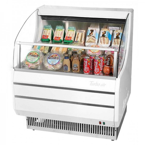 The Turbo Air TOM-30SW-N Horizontal Open Display Merchandiser is ideal for delis, grocery stores, self serve applications, and foodservice outlets that need to preserve and merchandise a variety of food items. This 28" wide display case delivers 4.7 Cu. Ft. capacity to meet the needs of your outlet. 3 shelves provides the storage flexibility you need. Perforated interior back walls and top with standard back guards improves airflow in the unit that keep your products fresh and safe. The ultra-modern design delivers an eye catching display in your store while allowing for fast service times in high traffic areas. Tempered front glass enhances visibility of different products to maximize showcase merchandising. This model boasts a Slim Line Glass Side Panel and comes with LED interior lighting to illuminate your merchandise. The self cleaning condenser has a brush that rotates frequently to keep the unit clean at all times. An optimal security cover ensures safety of your food items. What's more, an energy saving night curtain (standard) helps to conserve energy consumption. High density polyurethane provides added cooling efficiency. Kitchenall delivers the Turbo Air TOM-30SW-N and other commercial display merchandisers at wholesale pricing with 24 hour shipping to locations within the US and Canada.Standard Features
