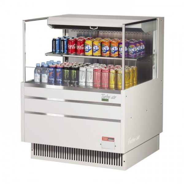 Turbo Air TOM-36L-UF-W-2S-N 35" Low Profile White Horizontal 1 Shelf Open Display Case w/ Glass Side Panel - 8 Cu. Ft.