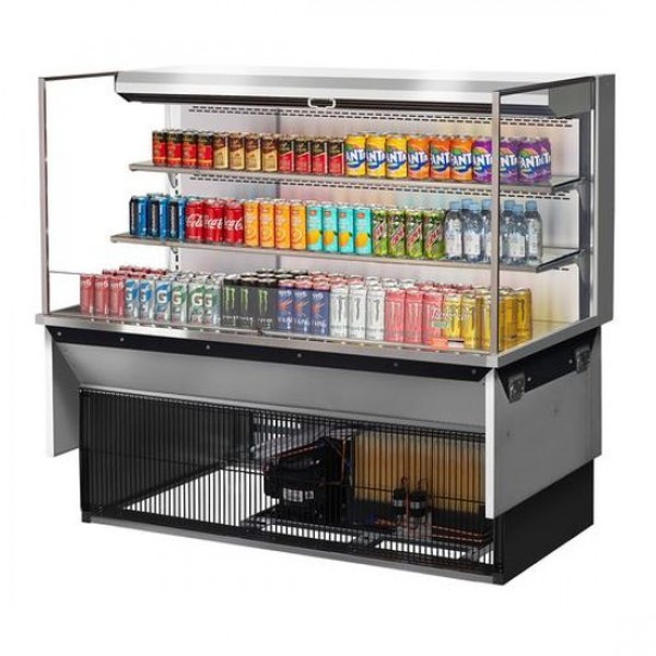 Turbo Air TOM-60L-UF-S-3SI-N 59" Low Profile Stainless Steel Drop-In Horizontal 2 Shelf Open Display Case w/ Glass Side Panel - 19 Cu. Ft.