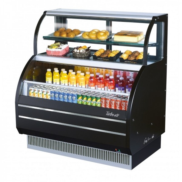 50 inch Refrigerated Open display case with Refrigerated glass top, in Black, As seen in many Starbucks locations, this is a combination open and closed front refrigerated display case.