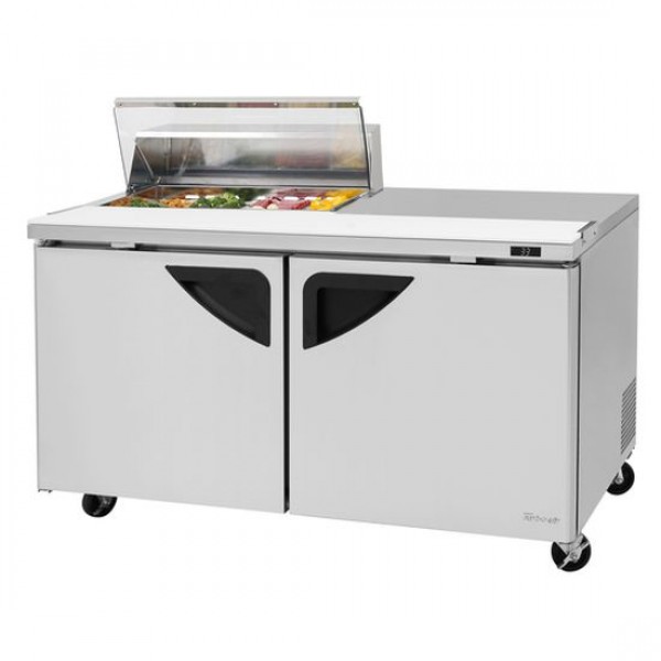 Turbo Air TST-60SD-08S-N-CL Super Deluxe Series 60" Clear Lid Two Solid Door Sandwich/Salad Prep Table & Work Station w/ 8-Pan Top - 19 Cu. Ft.