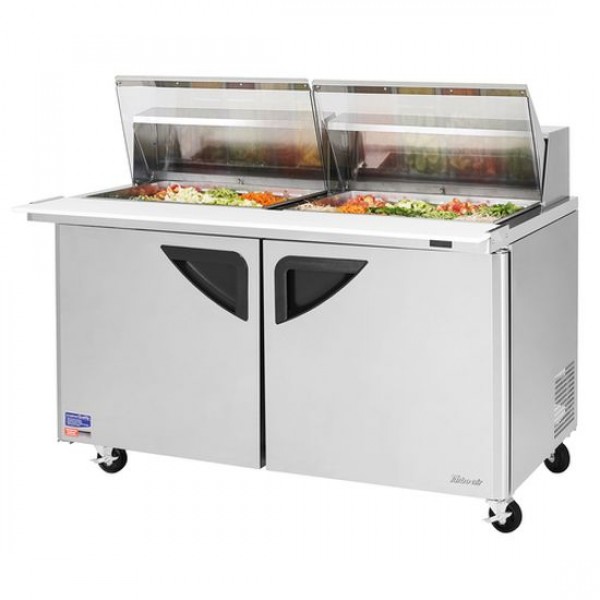 Turbo Air TST-60SD-24-N-CL Super Deluxe Series 60" Clear Lid Two Door Mega Top Prep Table w/ 24-Pan Top - 19 Cu. Ft.