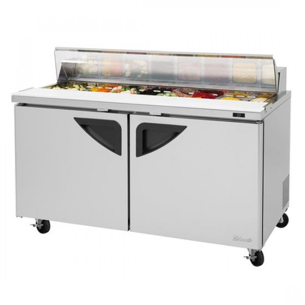 Turbo Air TST-60SD-N-CL Super Deluxe Series 60" Clear Lid Two Solid Door Sandwich/Salad Prep Table w/ 16-Pan Top - 16 Cu. Ft.