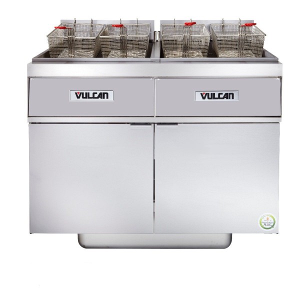 This electric floor fryer comes with a filter system that accommodates a maximum of four cabinets. Drawer style filter pan assembly holds 70 lbs shortening capacity. Filter vessel constructed of drawn (seamless) 18 gauge stainless steel. The filter pan weighs only 12.2 lbs. 1⁄3 H.P. motor and pump circulates hot frying compound at the rate of 8 gallons per minute, activated by a one touch push button switch. System provided standard with stainless steel mesh filter screen. Optional KleenScreen PLUS® envelopes filter out particulate down to .5 microns. Standard equipment comes on legs, has a tank brush and cleanout rod. Hands free oil return line connection. Drain valve interlock switch turns fryer's heating elements off when drain valve is opened. Power supply is 208 volt, 60 Hz, 3 phase.