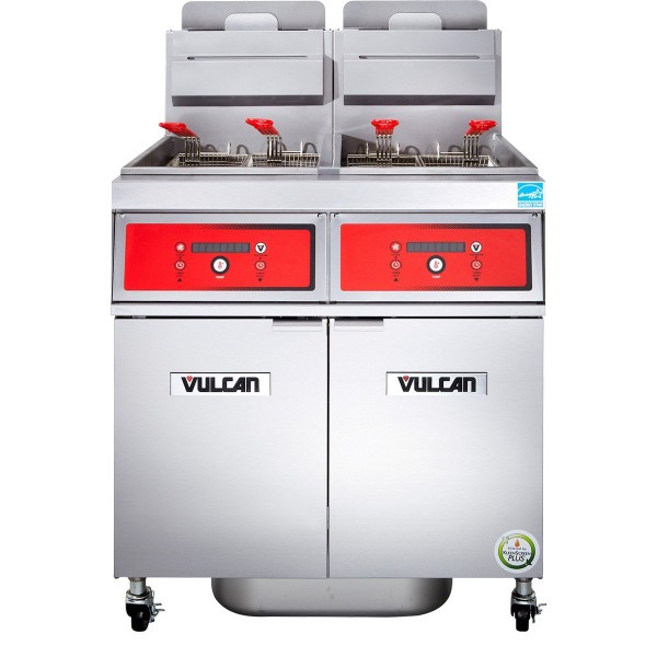 This 85 - 90 lbs capacity freestanding gas fryer comes with a 90,000 BTU/hr input and a stainless steel cabinet. Set of four 6" adjustable casters (2 locking). Stainless steel fry tank with ThreePass™ heat transfer system. ENERGY STAR® certified. SoftStart™ ignition system using 45,000 BTU/hr to extend oil life during startup. The idle rate of 5,575 BTU/hr to maintain cooking temperature. 1-1⁄4" port ball type drain valve. Twin fry baskets with plastic coated handles. Solid state analog knob control, digital, or programmable computer control systems all standard with the electronic matchless ignition. Tank brush and clean-out rod included.