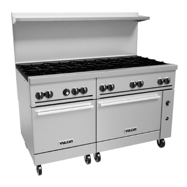 Being able to find an oven range that can handle the busiest of meal rushes can be a challenge. It has to sauté, boil, simmer, fry, bake, and roast for hours upon hours on end. It has to be made out of durable materials, and be easy to operate for you and your staff. The more options it offers, the more you'll be able to do, and the more it can specifically meet your restaurants or food service arenas needs. The Vulcan-Hart 60SC-10B Gas Restaurant Range with dual oven base is potentially the perfect fit, able to do all that you require and more.