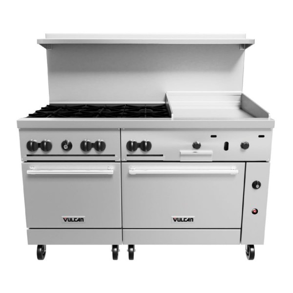 Vulcan 60SS-6B24GBN Endurance 6-Burner 60" Natural Gas Range with 24" Griddle/Broiler and Standard Oven Base - 268,000 BTU