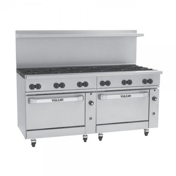 Being able to find an oven range that can handle the busiest of meal rushes can be a challenge. It has to sauté, boil, simmer, fry, bake, and roast for hours upon hours on end. It has to be made out of durable materials, and be easy to operate for you and your staff. The more options it offers, the more you'll be able to do, and the more it can specifically meet your restaurants or food service arenas needs. The Vulcan-Hart 72CC-12BP Gas Restaurant Range with dual convection oven base is potentially the perfect fit, able to do all that you require and more.