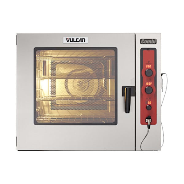 Vulcan ABC7G-PROP combination oven has a capacity of (7) racks for a total of (7) 18" x 26" full size sheet or (14) 12" x 20" full size hotel pans. There is a temperature range of 80 - 450 degrees F on this combination oven steamer.