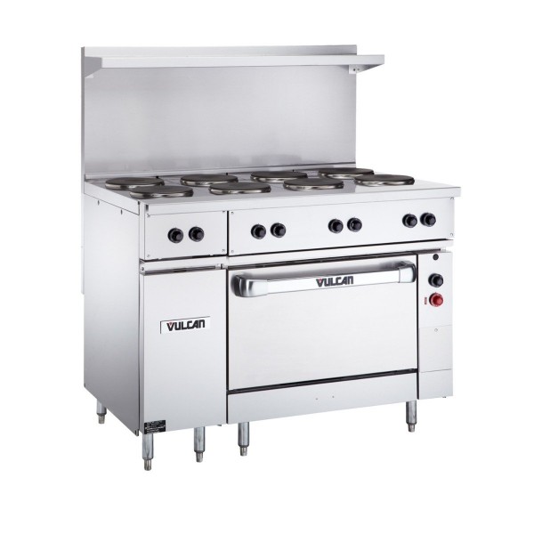 Vulcan EV48S-8FP240 Endurance 48" Stainless Steel Electric Range with Eight French Plates and Oven Base - 240V