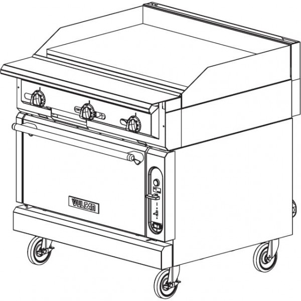 Vulcan VGMT36B Liquid Propane V Series 36" Wide Thermostatic-Control Cabinet Base Griddle Heavy-Duty Stainless Steel Range On Legs, 90,000 BTU