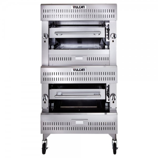Vulcan VIB2 Liquid Propane V Series Double-Deck 1 Infrared Burner Over 1 Ceramic Burner Heavy-Duty Stainless Steel Upright Broiler On Casters, 200,000 BTU