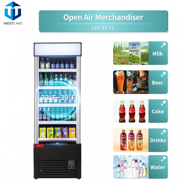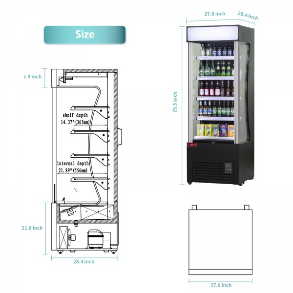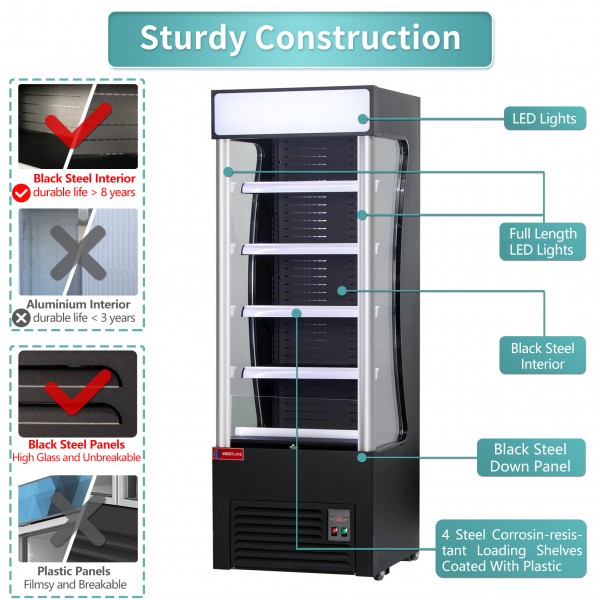 WESTLAKE Commercial Refrigerator Open Air Merchandiser 27.5” W 28.3" D Upright Fan Cooling Display Cooler for Stores, Restaurants, Bar, Shops, etc.