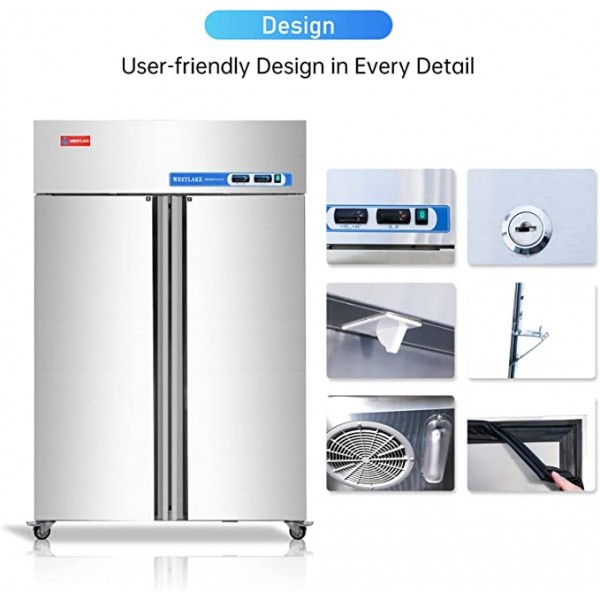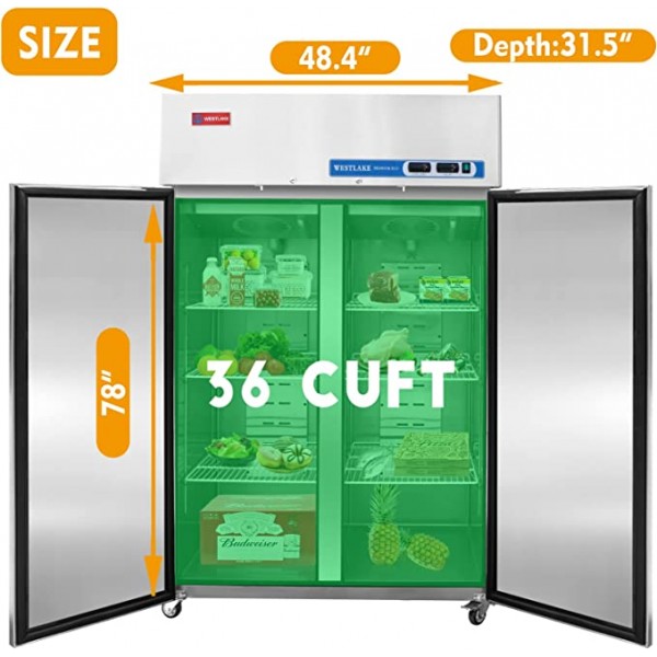 WESTLAKE Commercial Refrigerator Freezer Combo, WK-48RF, 2 door 48" Reach In Upright Refrigerator and Freezer, 36 Cu.ft
