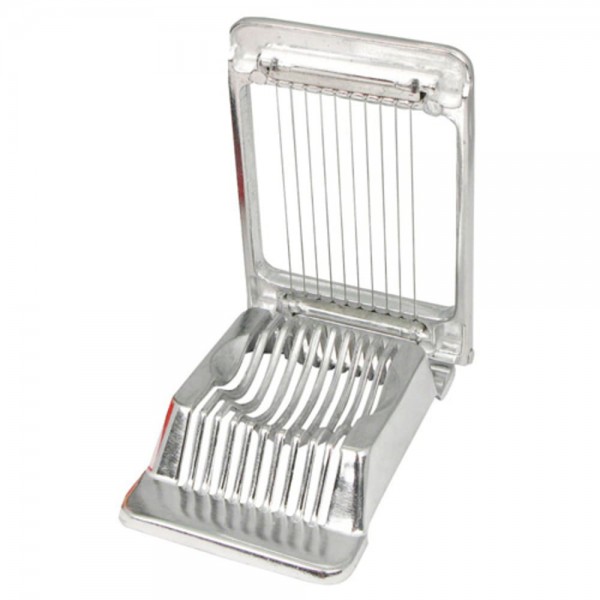 Use the Winco AES-4 square aluminum egg slicer to produce uniform pieces of hard boiled eggs for sandwich fillings and egg salads. Built with 10 piano wires, this slicer quickly and effortlessly divides peeled hard boiled eggs into perfect rounds and ovals. This hinged egg slicer is made of die-cast aluminum, enabling it to withstand even the toughest test in a busy kitchen. This square slicer will produce 11 equal slices for all your needs. This model is also hand wash only.