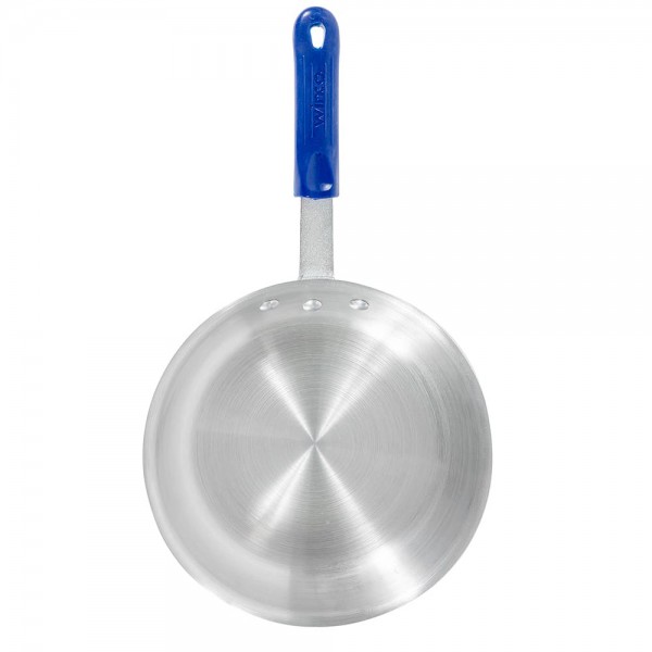 The Winco AFP-10A-H is a fry pan that is the perfect solution for quickly making fajitas, omelettes, pasta dishes, and everything in between. This 10" diameter fry pan has a sturdy aluminum construction, making it a great fry pan to keep in your busy kitchen. The handle comes with a removable silicone sleeve, and is riveted to the pan body at three points providing a sturdy, durable connection that won't come loose or break over time.