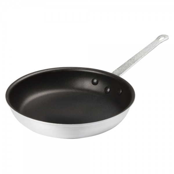 Fry, sear, scramble, and saute all of your signature dishes in the versatile AFP-10XC 10" aluminum fry pan. Constructed of 3003 series aluminum alloy with a riveted heavyweight handle, this Gladiator fry pan will keep up with the rigorous demands of a commercial kitchen, in addition to providing excellent heat distribution for searing, browning, and frying. The Excalibur non-stick finish bonds to the aluminum for a long lasting, scratch-resistant finish.