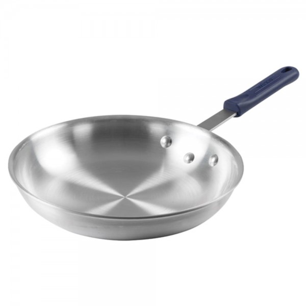 The Winco AFP-12A-H is a fry pan that is the perfect solution for quickly making fajitas, omelettes, pasta dishes, and everything in between. This 12" diameter fry pan has a sturdy aluminum construction, making it a great fry pan to keep in your busy kitchen. The handle comes with a removable silicone sleeve, and is riveted to the pan body at three points providing a sturdy, durable connection that won't come loose or break over time.