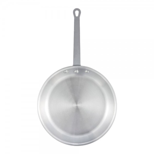 Fry, sear, scramble, and saute all of your signature dishes in the versatile AFP-12S 12" aluminum fry pan. This 12" diameter fry pan has a sturdy aluminum construction, making it a great fry pan to keep in your busy kitchen. The handle is riveted to the pan body at three points providing a sturdy, durable connection that won't come loose or break over time.
