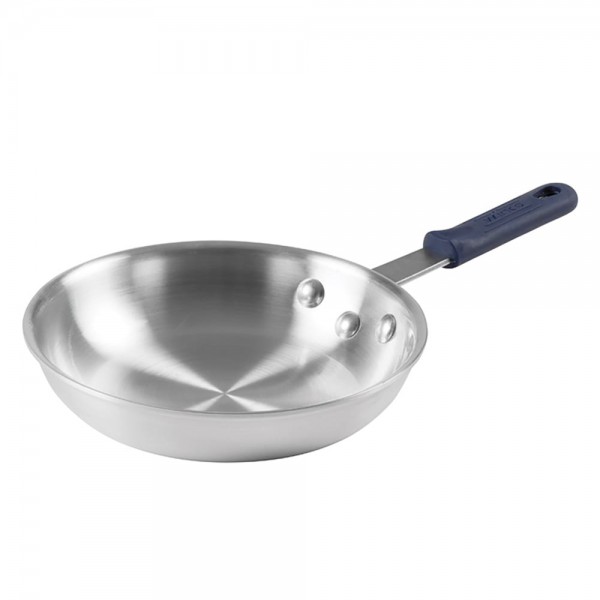 The Winco AFP-8A-H is a fry pan that is the perfect solution for quickly making fajitas, omelettes, pasta dishes, and everything in between. This 8" diameter fry pan has a sturdy aluminum construction, making it a great fry pan to keep in your busy kitchen. The handle comes with a removable silicone sleeve, and is riveted to the pan body at three points providing a sturdy, durable connection that won't come loose or break over time.