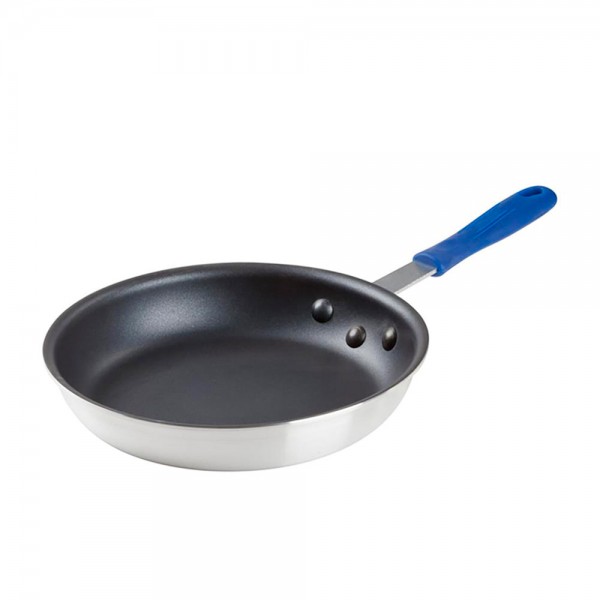 The Winco AFPI-10NH is an induction ready fry pan with a 10" diameter. Despite this fry pan's deep drawn type 3003 aluminum construction, a stainless steel bonded plate gives it the ability to work with Winco induction cooktops, granting it a versatility that standard aluminum fry pans do not have. The aluminum pan body has a Quantum2 non-stick coating and features a durable riveted handle. The included silicone sleeve is heat resistant up to 500ºF, providing additional protection against burns in the kitchen.