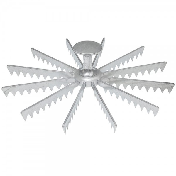 Whether used at a cafe, restaurant, or bakery, this tool will become a must-have for your dessert preparation needs. This pie cutter will guarantee to produce 12 beautiful, uniform slices each and every time. Each arm has nine teeth to clearly mark the cutting path.