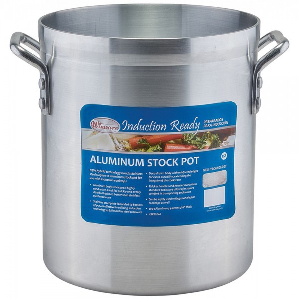 Winco AXSI-12 12 Quart Induction Ready Aluminum Stock Pot with Stainless Steel Bottom