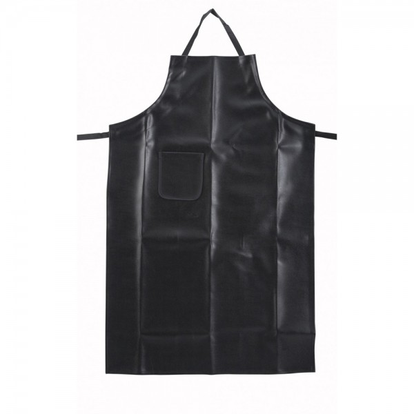 The BA-HN is the Black 41 1/4" long x 26 1/2" wide, heavy vinyl apron from Winco's Signature Chef apparel collection that has 1 pocket.