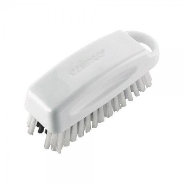 The Winco BRN-52 is a nail cleaning brush for hand hygiene in the workplace. This brush features stiff center bristles for cleaning under the fingernails while also having a soft side of bristles for use on hands and nails. The contour design of the handle is great for comfort but also prevents surface contact when stored on the side to prevent contamination.