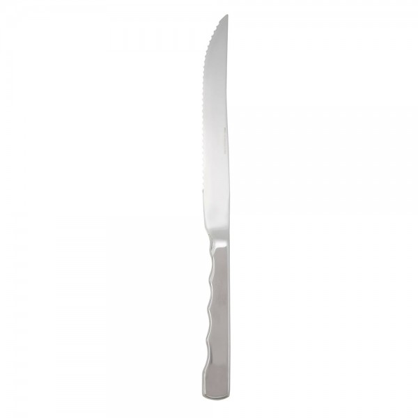 Ideal for cutting clean, even, and thin slices of succulent beef, poultry, or other large cooked meats, this 8" professional quality carving knife is an impressive addition to any kitchen. Its stylish brushed stainless steel design and wave-edge blade offer excellent stability and long-lasting sharpness. Featuring a thinner blade than a chef's knife, it offers superior performance and can carve more precise cuts of meat that will leave a memorable impression on all of your guests. With its hollow handle construction, this knife is lightweight enough for convenient usage and handling.