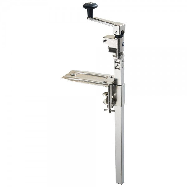 This Winco can opener has a long crank handle to make opening cans easy and fast. The CO-3N can opener is constructed from nickel plated steel. A rust resistant stainless steel blade and gear opens various cans up to size #10.