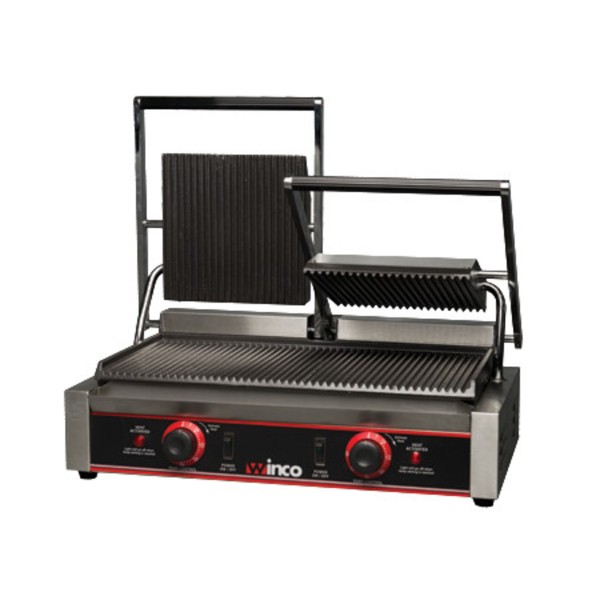 Winco EPG-2 Double Panini Grill w/ Dual 9" Ribbed Plates
