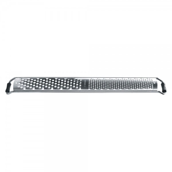 The GT-345 is a 14-1/10" single plane cheese grater. This model is constructed from durable 18/8 stainless steel and is durable enough for daily use. Use this manual grater/zester for adding lemon zest or grated parmesan to your specialty dishes. For added convenience, this manual grater / zester has a soft grip handle for excellent balance and anti-slip feet for stability. This model is also dishwasher safe.