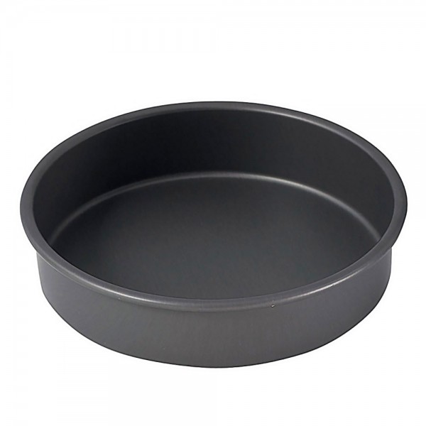 The Winco HAC-082 is a round anodized aluminum cake pan. The pan has a diameter of 8 inches and a depth of 2 inches. This model is constructed from durable 18 gauge anodized aluminum which resists breaking. The straight-sided design provides optimum heat conduction for evenly-baked results. The pan is also hand wash only.