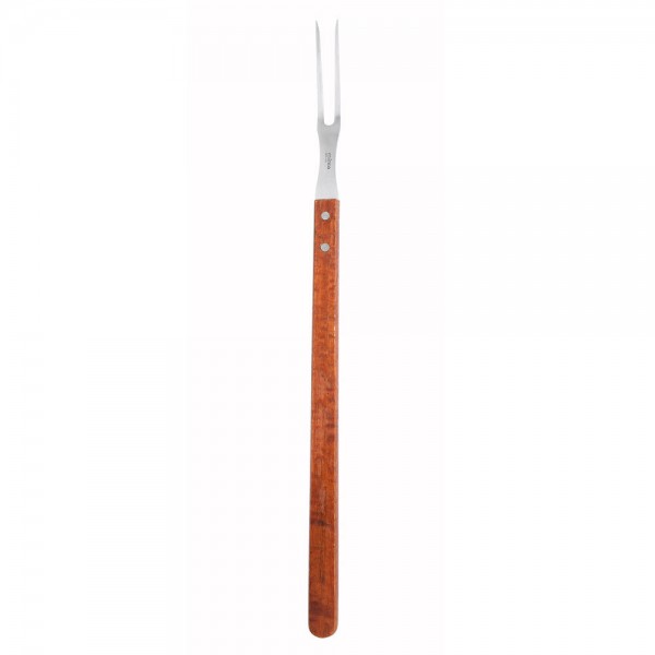 The Winco KPF-210 is a stainless steel pot for with a length of 21-7/8 inches. This long fork is great to use when grilling or holding roasts and turkeys in place while carving. The fork also features a wooden handle for a comfortable grip.